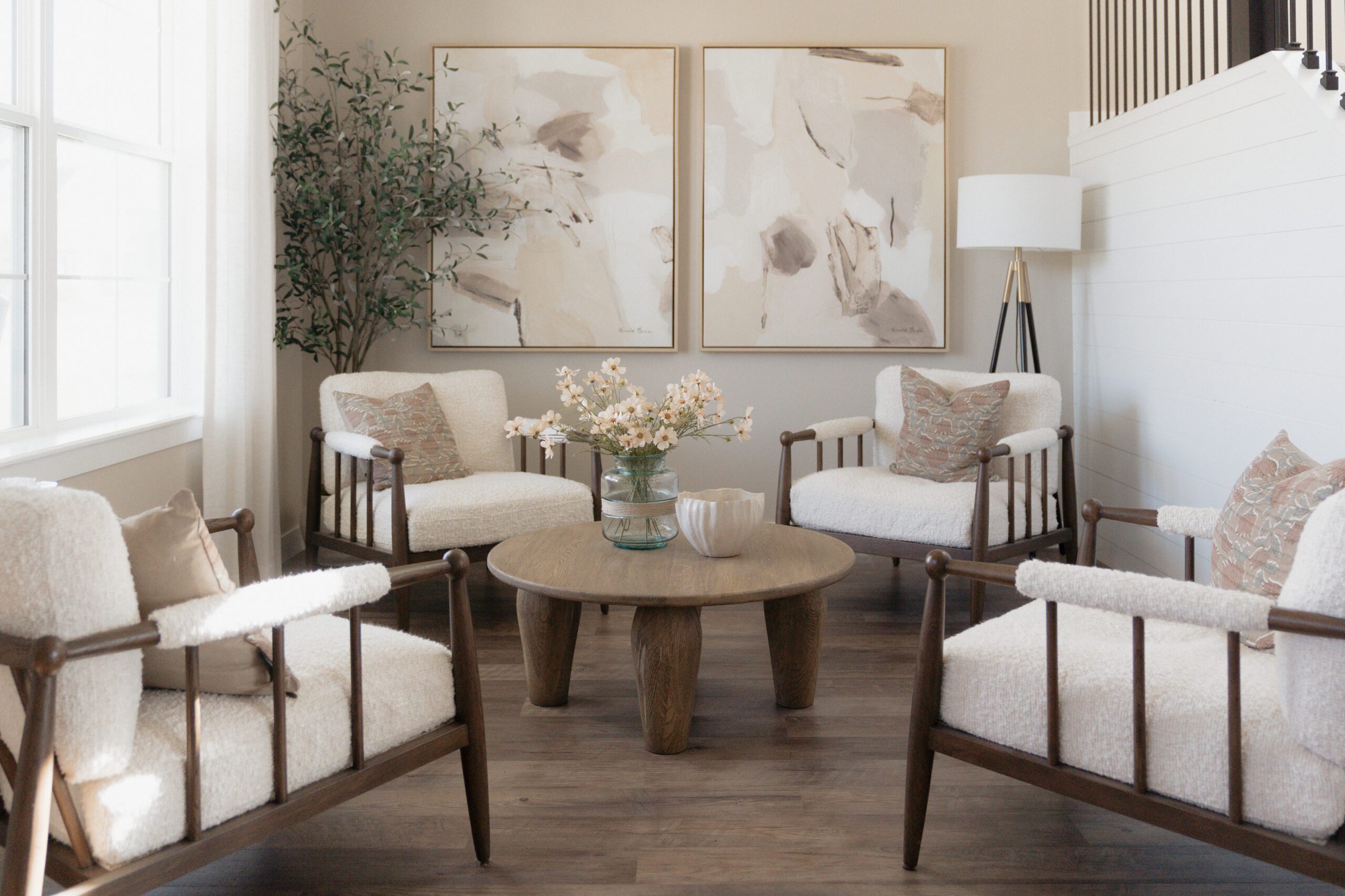 - Introduce soft, earthy hues through rugs, pillows, or art.