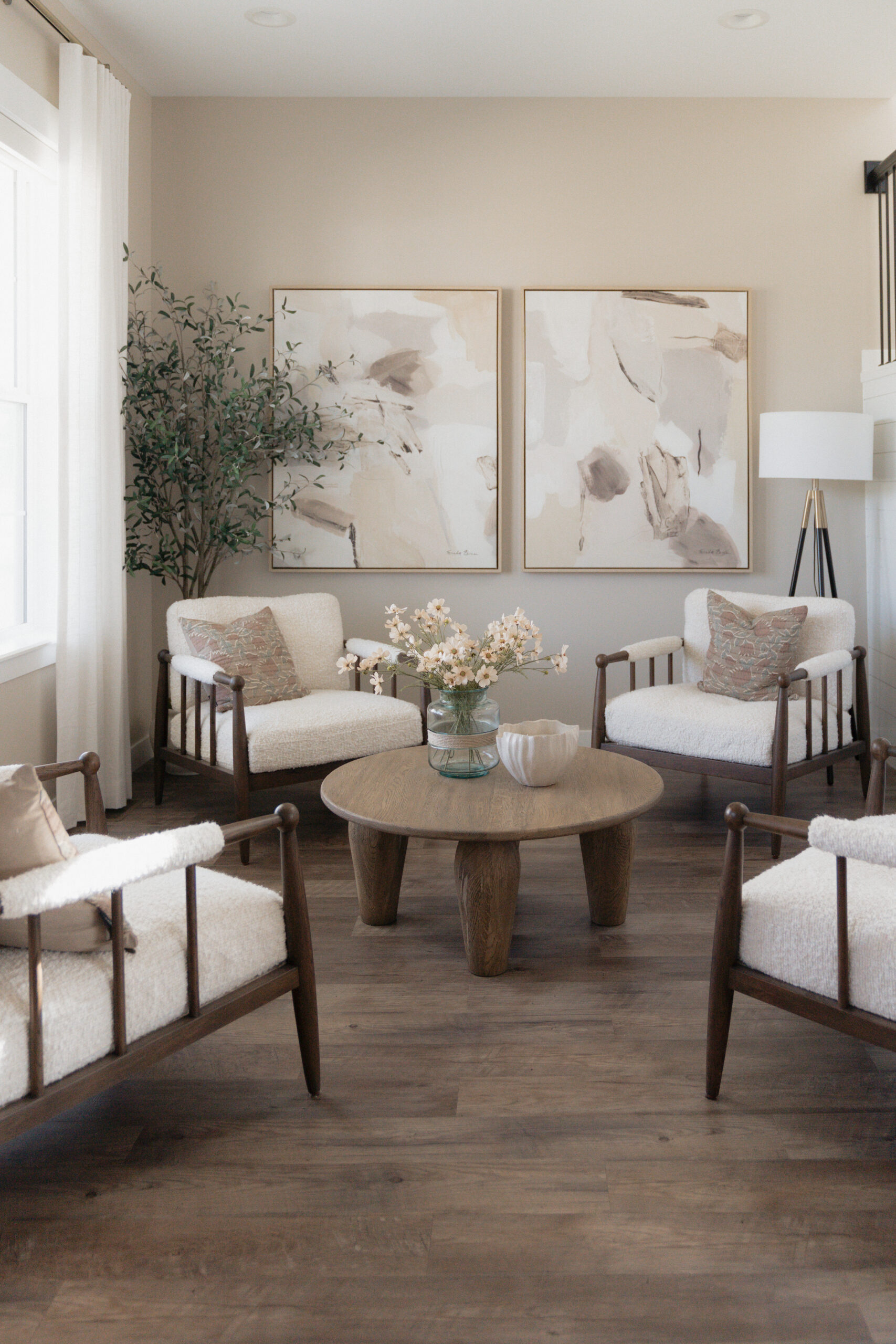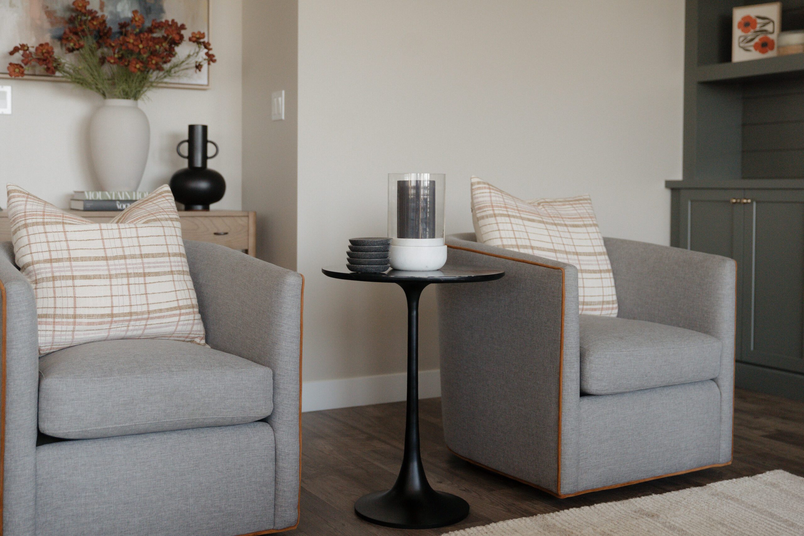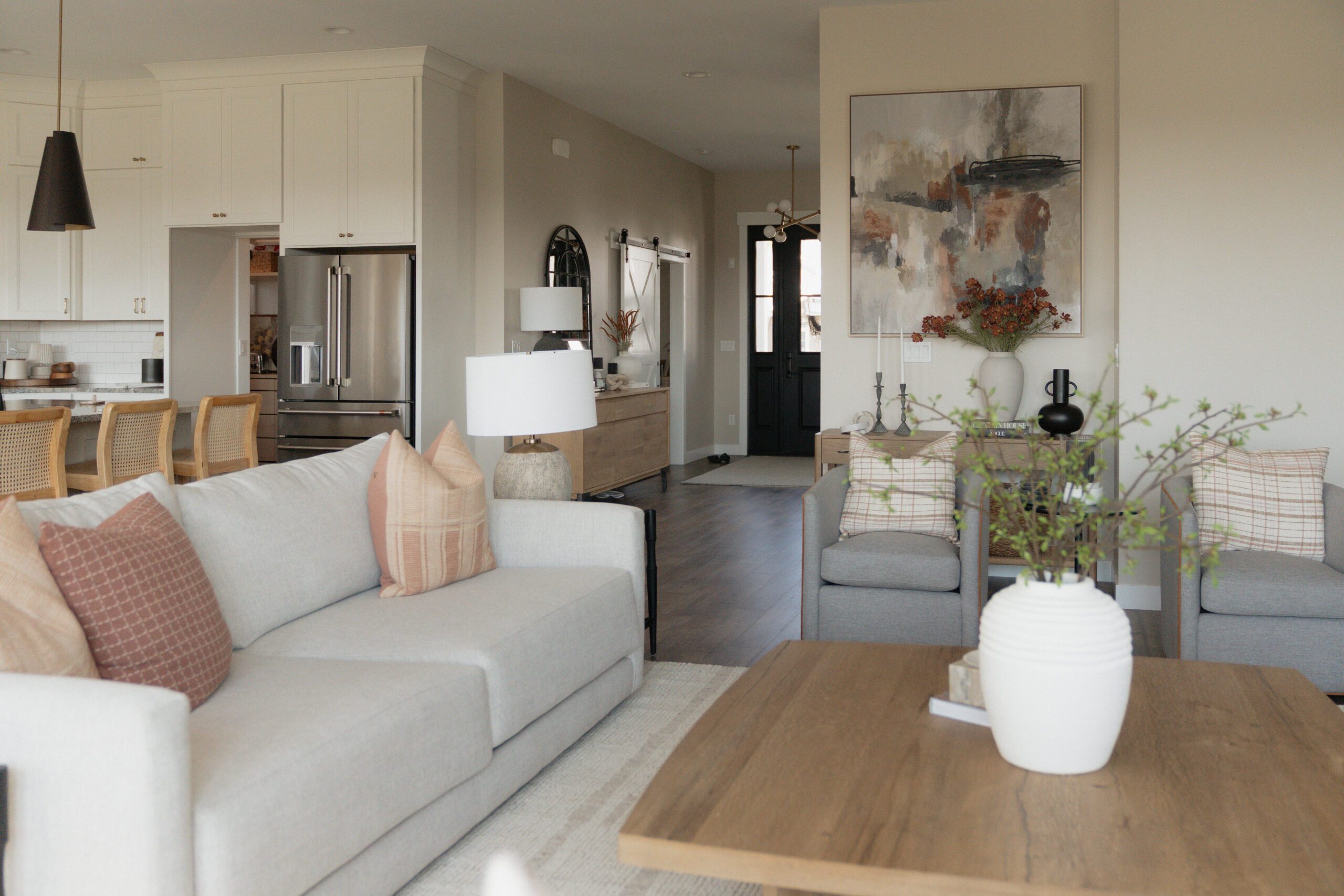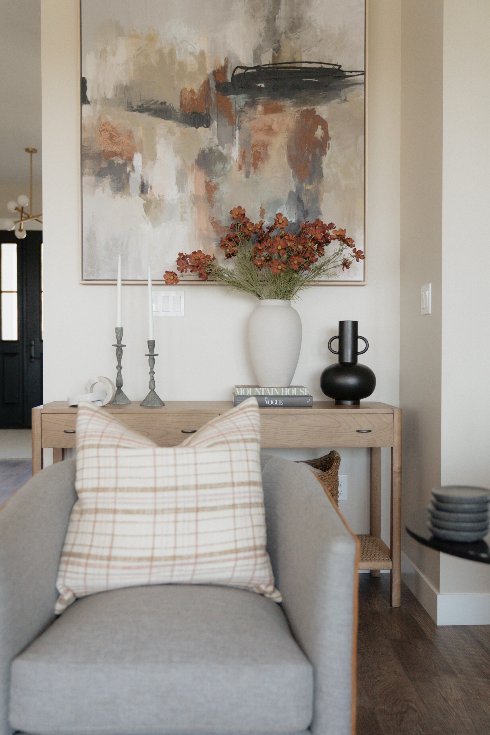 To achieve this, the project included a full refresh with updated paint throughout, new carpeting, lighting upgrades, and thoughtfully selected furnishings and décor that complemented her existing pieces. The design direction embraced soft textures, organic elements, warm tones, and subtle feminine touches—introducing warmth and personality into each room.