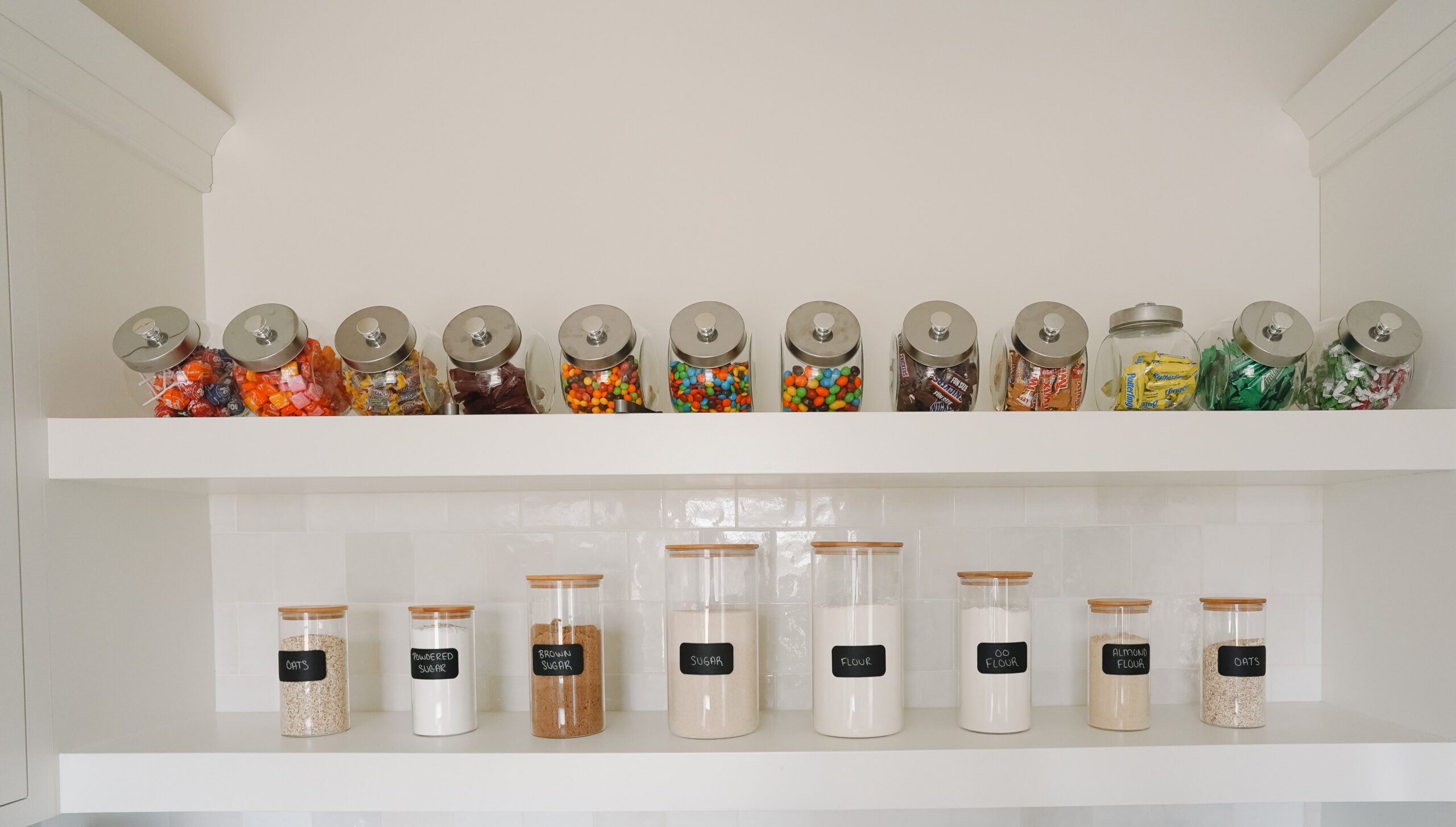 - Opt for glass or acrylic jars to store pantry staples like flour, pasta, and cereal.